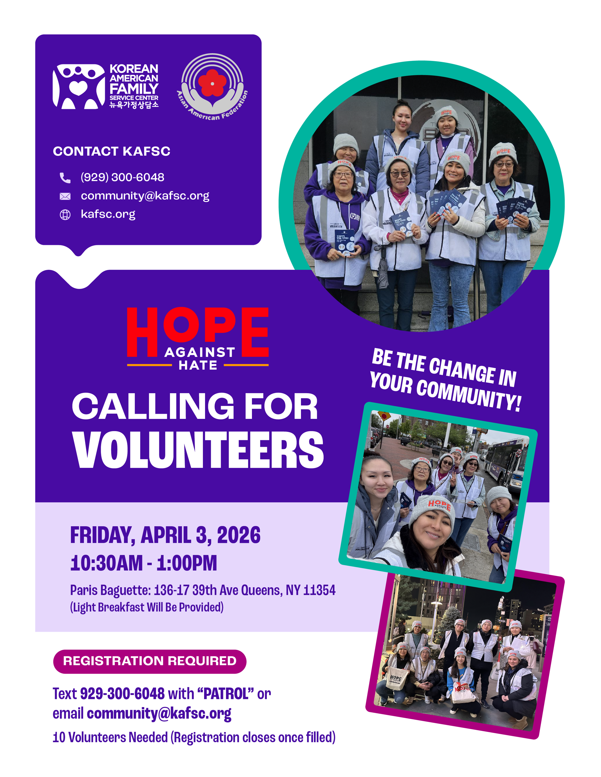 Join our Patrol Team to help keep our Asian community safe as they go about their daily routines, commute to work, and return home. We will share safety resources and look out for our neighbors, especially those who feel most vulnerable during this season.